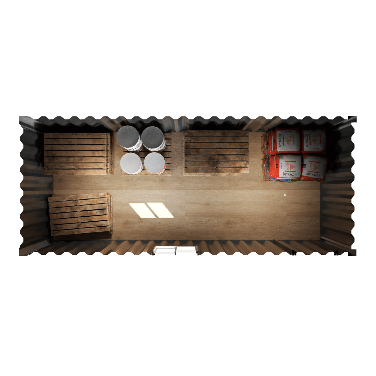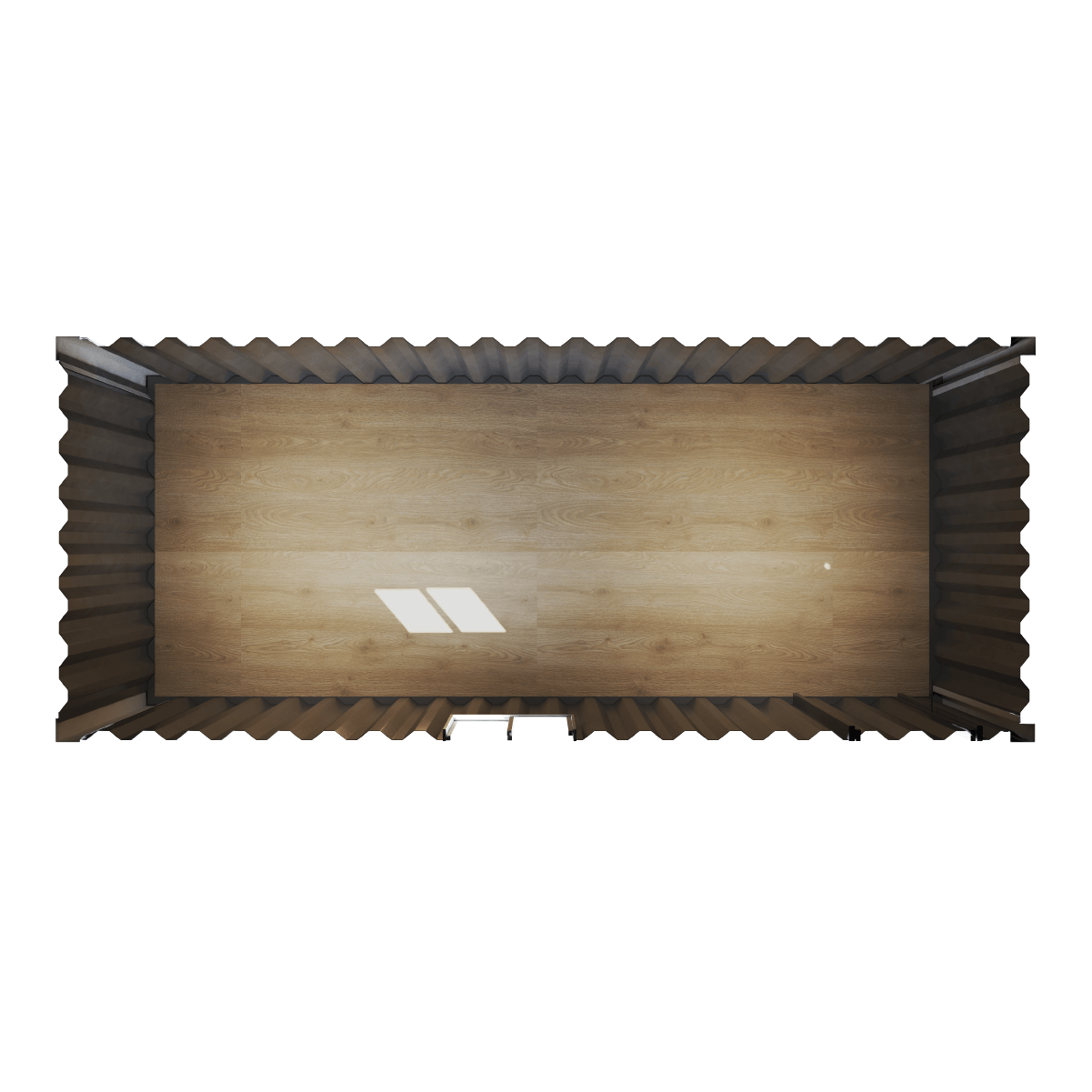 EXTERIOR / INTERIOR Paredes y techo en chapa trapezoidal. Piso multilaminado fenólico 18 mm.